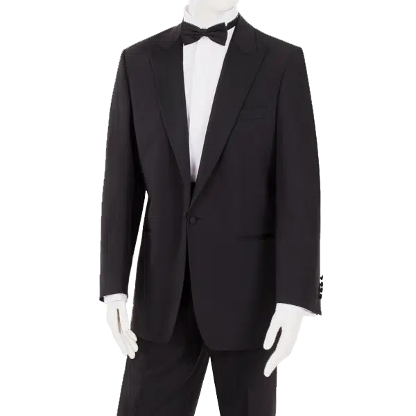 The tuxedo or dinner jacket, often indicated as “Black Tie” on invitations, is the perfect choice for social events held after 6 p.m. As the so-called “semi-formal evening suit,” it is the evening counterpart to the Stresemann and ranks one level below the tailcoat.